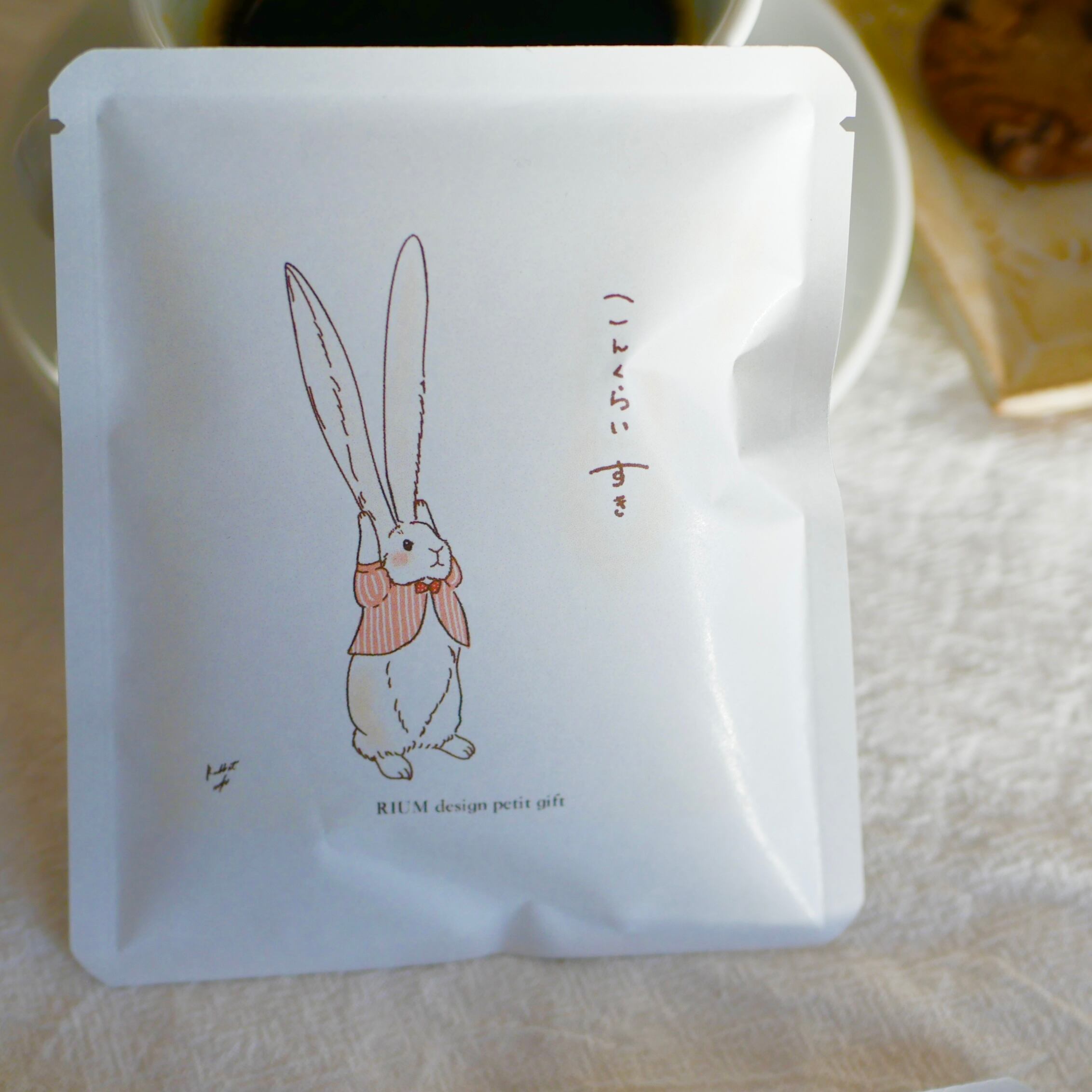 かわいいお耳のながーーいうさぎのデザインが施されたドリップバッグ。